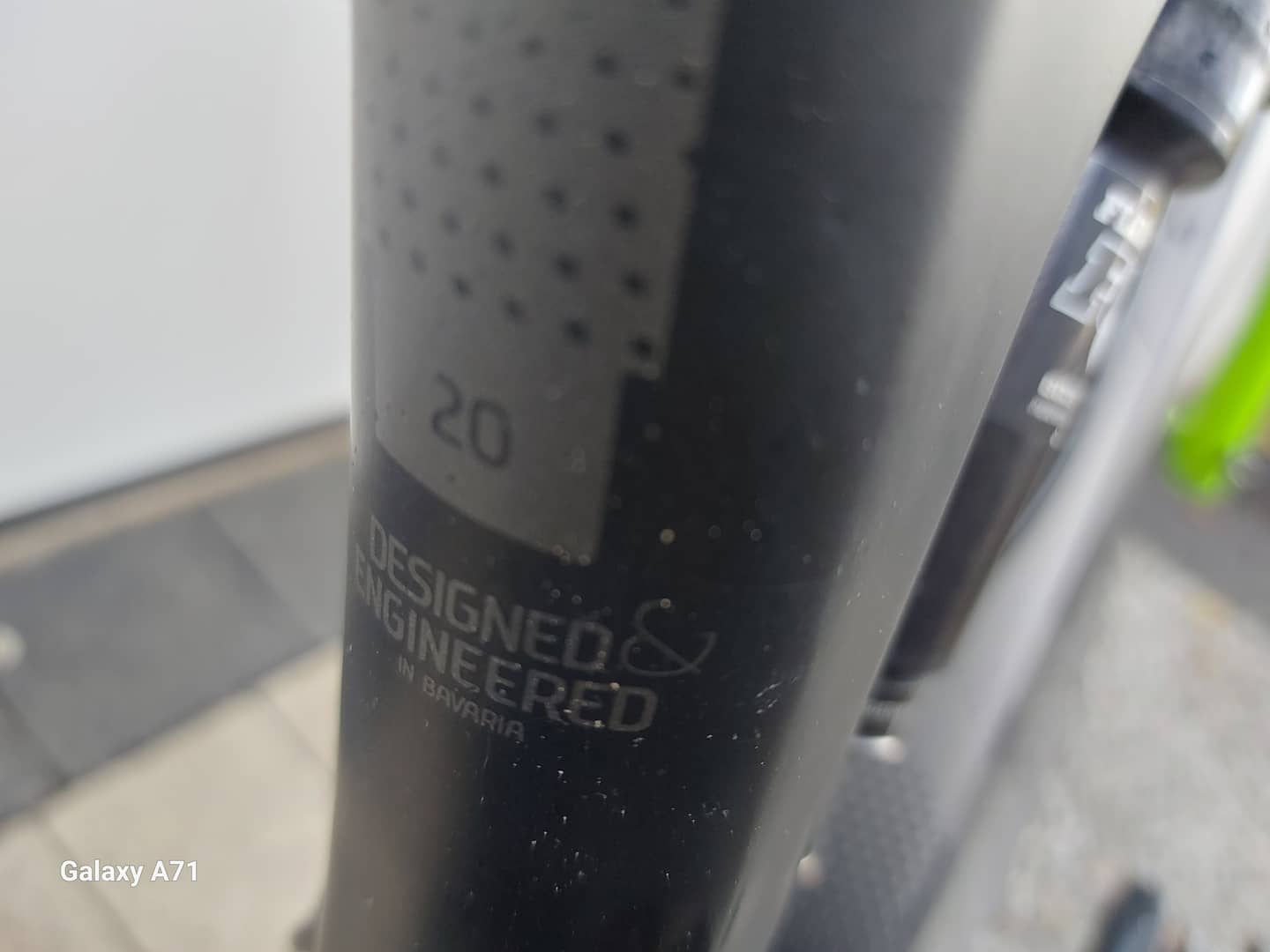- rama CARBONOWA , wytrzymała , rozmiar 20 cali ( 52 cm od suportu (pedał) do mocowania pod siodełkiem ) - tylny wózek aluminiowy