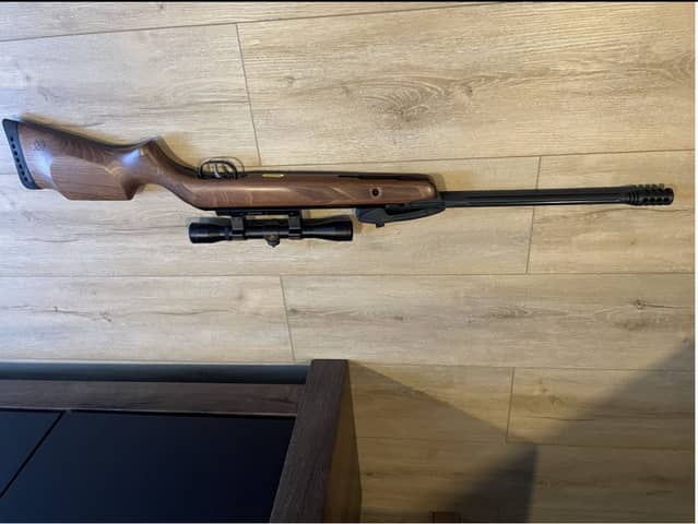 Posiadam na sprzedaż Wiatrówka Gamo Fast Shot 10X IGT 4,5 mm z lunetą 4x32 dodatkowo z magazynkiem na śrut, w magazynku mieści się 10 sztuk śrutu.
