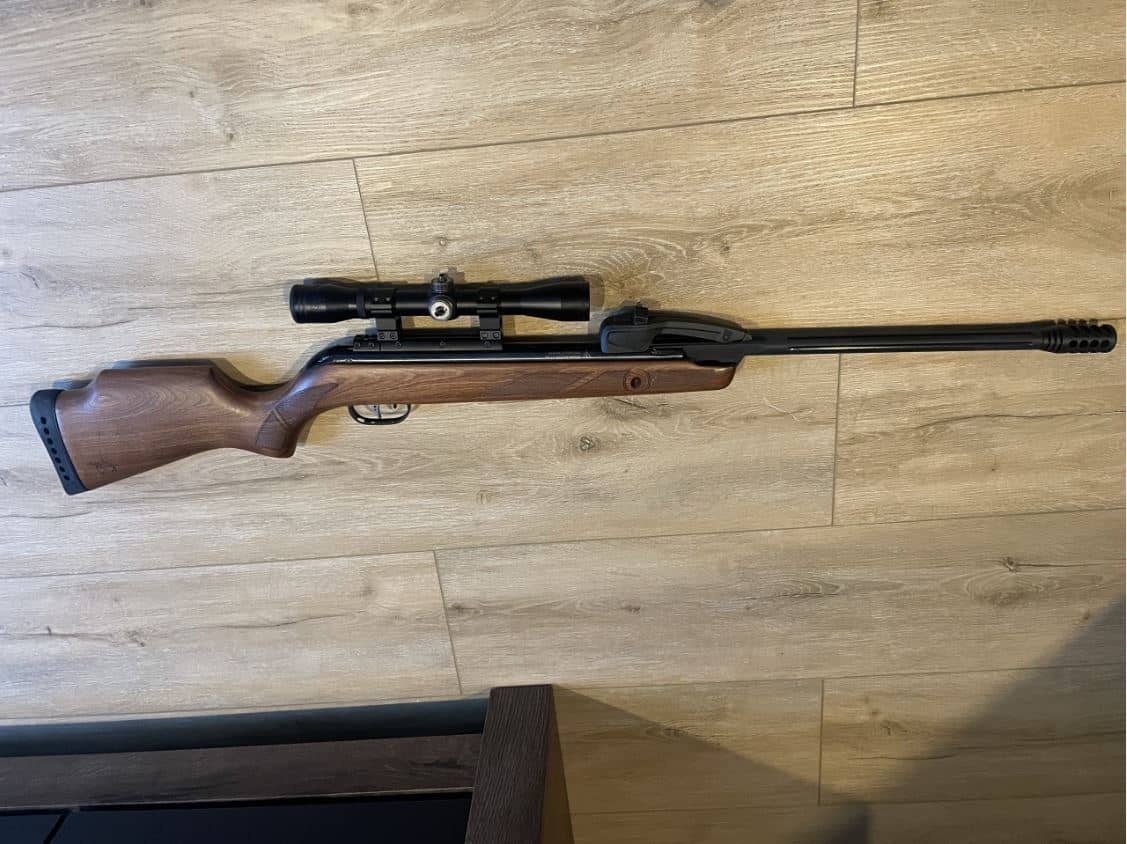 W komplecie do wiatrówki dołączona jest luneta 4x32 wraz z montażem oraz magazynek o pojemności 10 śrucin.