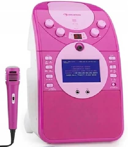 Karaoke z kolorowym wyświetlaczem i wbudowanym głośnikiem.