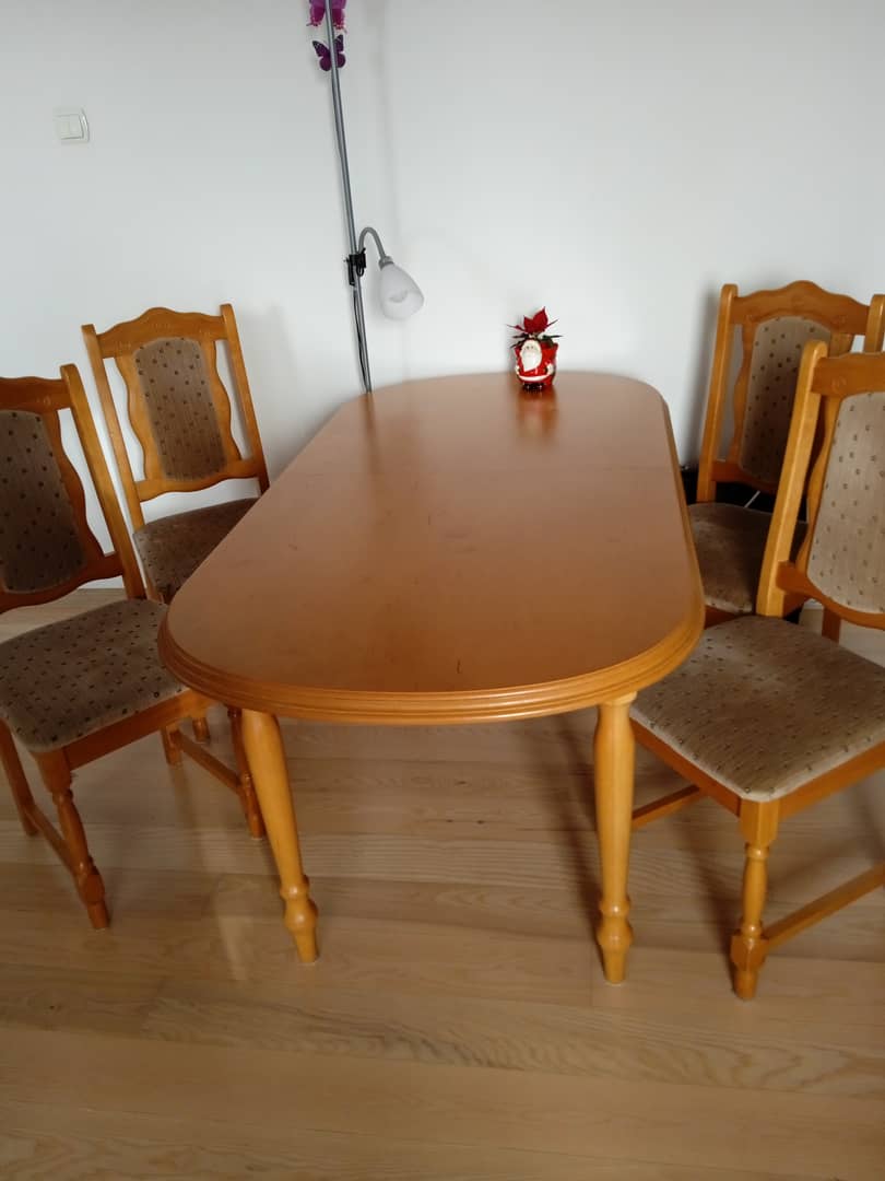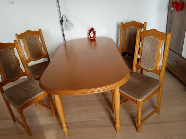 Sprzedam rozkładany stół z czterema krzesłami w bardzo dobrym stanie,cena600 zł do negocjacji.