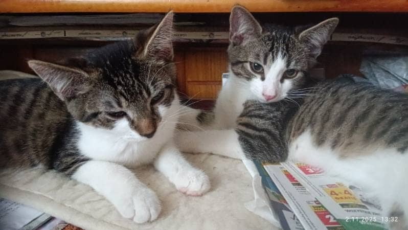 Oddam około 10 grudnia rodzeństwo kotkę Balbinkę i kocurka Ptysia. Mają około 3 miesięcy, do adopcji tylko razem. Są zaszczepione dwukrotnie, odrobaczone i odpchlone. Załatwiają się do kuwetki. Bardzo milutkie. Dom niewychodzący z osiatkowanym balkonem i oknem.