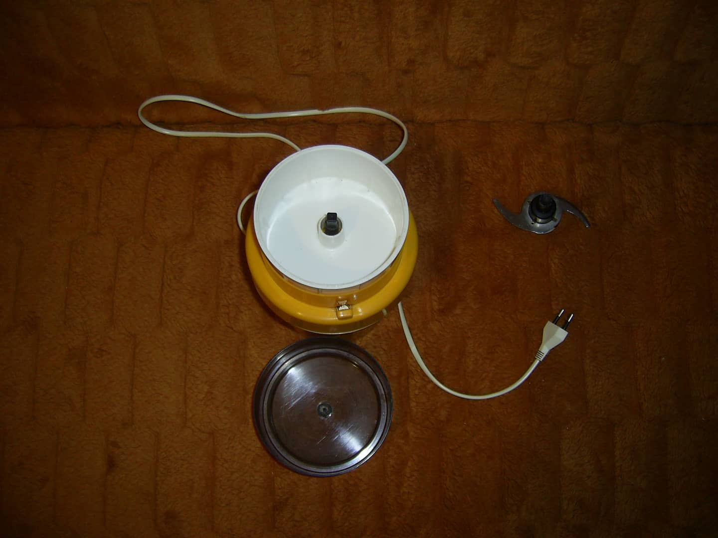 Sprzedam sprawny rozdrabniacz/młynek Multiboy LZ 251 wyprodukowany w byłej NRD w latach 80 przez VEB Elbtalwerk Heidenau. Zasilanie sieciowe 220 V. Moc 500 W. Rozdrabniacz pracuje w trybie naciśnij pokrywę, puść pokrywę, naciśnij, puść przez kilika sekund itd. Rodzinna pozostałość. Nosi zwykłe ślady użytkowania. Brak jednej nóżki. 70 zł.