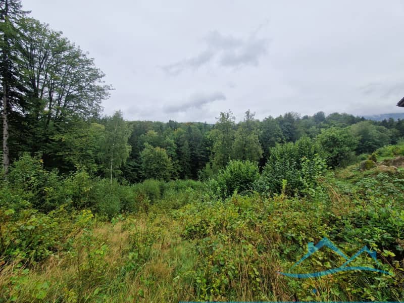 Działka położona na zboczu, z widokiem na las, potok Podgórnej oraz góry.