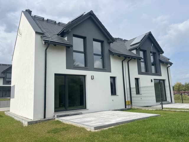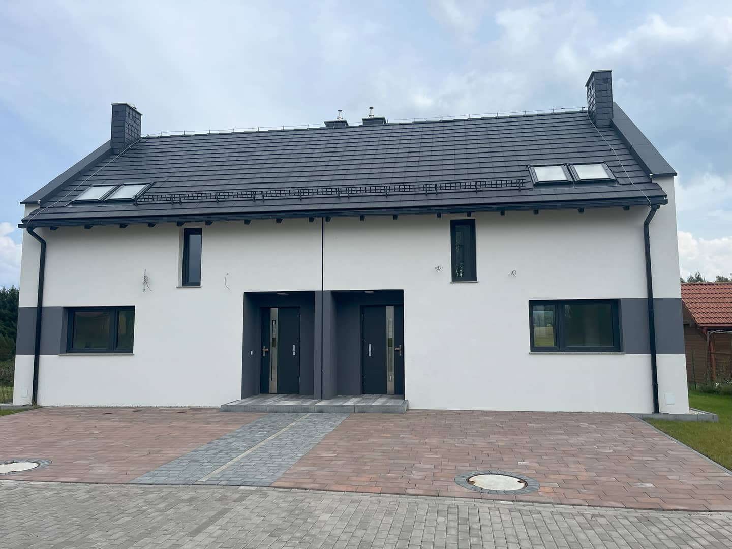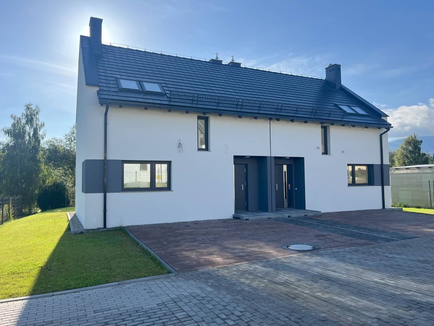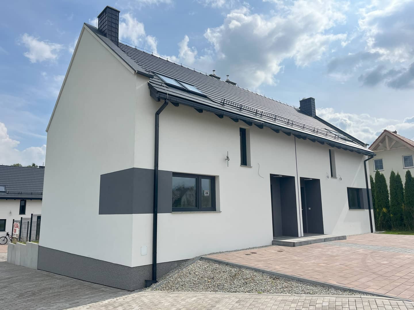 Nowy Dom w zabudowie bliźniaczej w Jeżowie Sudeckim. Posadowiony na działce 347 m2, budowany z Ytonga , ocieplony, wykończony tynkiem gtafit, dach pokryty dachówką ceramiczną. Projekt " Do