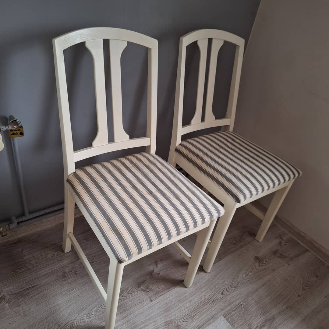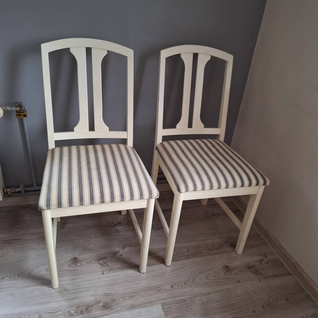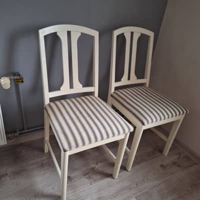Dwa drewniane krzesła w dobrym stanie. Stabilne i wygodne, możliwy dowóz. Cena 150 zł za dwa.