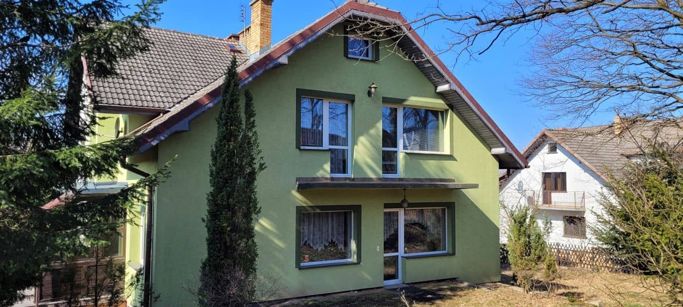 Atrakcyjny dom wolnostojący w Jeżowie Sudeckim. Budowany w 2005 roku z suporexu, dach pokryty gontem, ocieplony styropianem, pokryty tynkiem strukturalnymi. Powierzchnia całkowita domu wynosi 150m2
