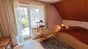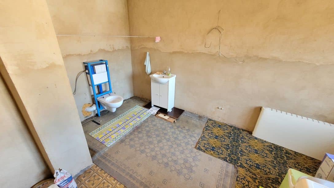 Na piętrze są 3 sypialnie ( na rzucie są 2, ale większy pokój jest podzielony na 2 mniejsze ), bardzo duża widna łazienka, która wymaga wykończenia oraz przedpokój. 2 sypialnie mają wyjście na wspólny balkon od strony ogrodu ( nie ma zainstalowanych barierek ).