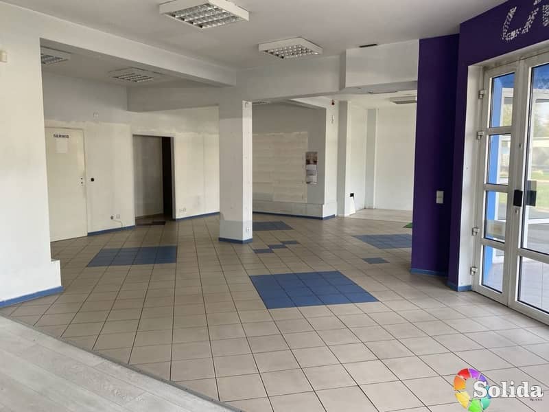 Lokal o powierzchni 109 m2 składa się z dużej sali sprzedaży, zaplecza sanitarnego oraz łazienki z WC.