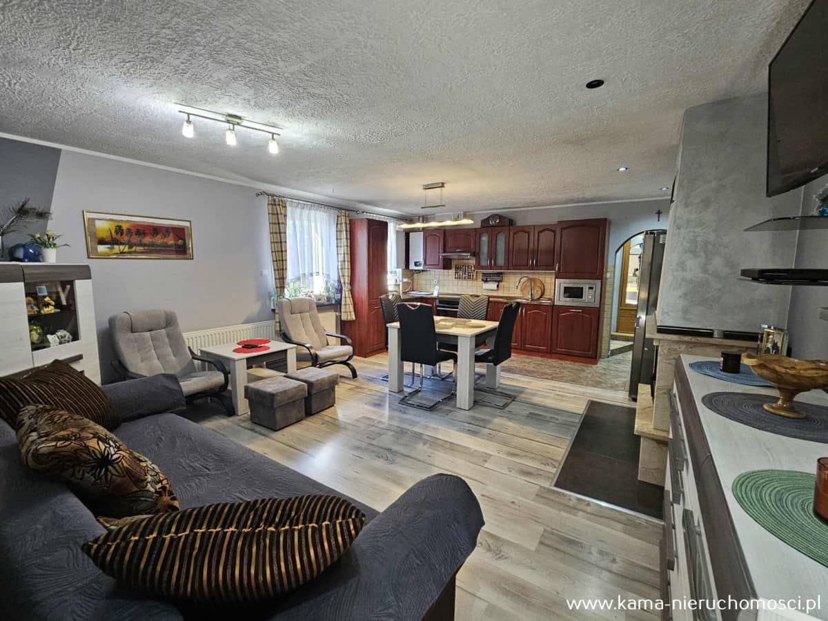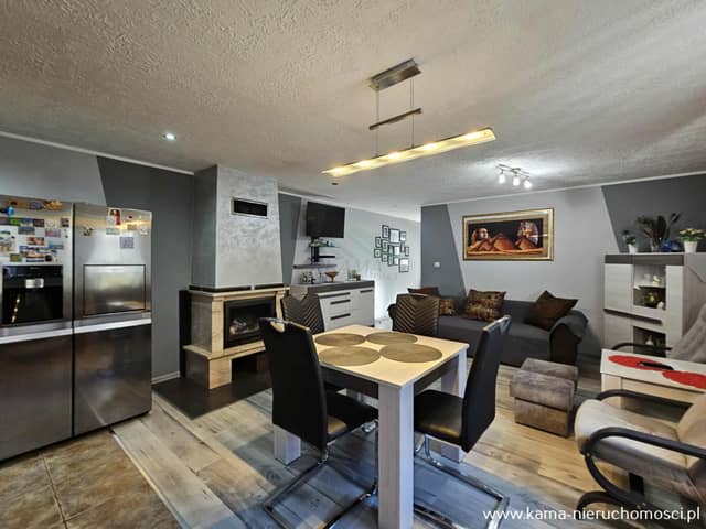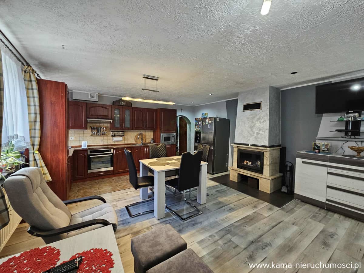 Ogrzewanie i ciepła woda pochodzą z nowoczesnego, dwufunkcyjnego pieca gazowego (zaledwie 2-letni). Dodatkowo w salonie znajduje się kominek z rozprowadzeniem ciepła do pozostałych pomieszczeń, co zapewni ciepło i przytulną atmosferę w chłodniejsze dni.