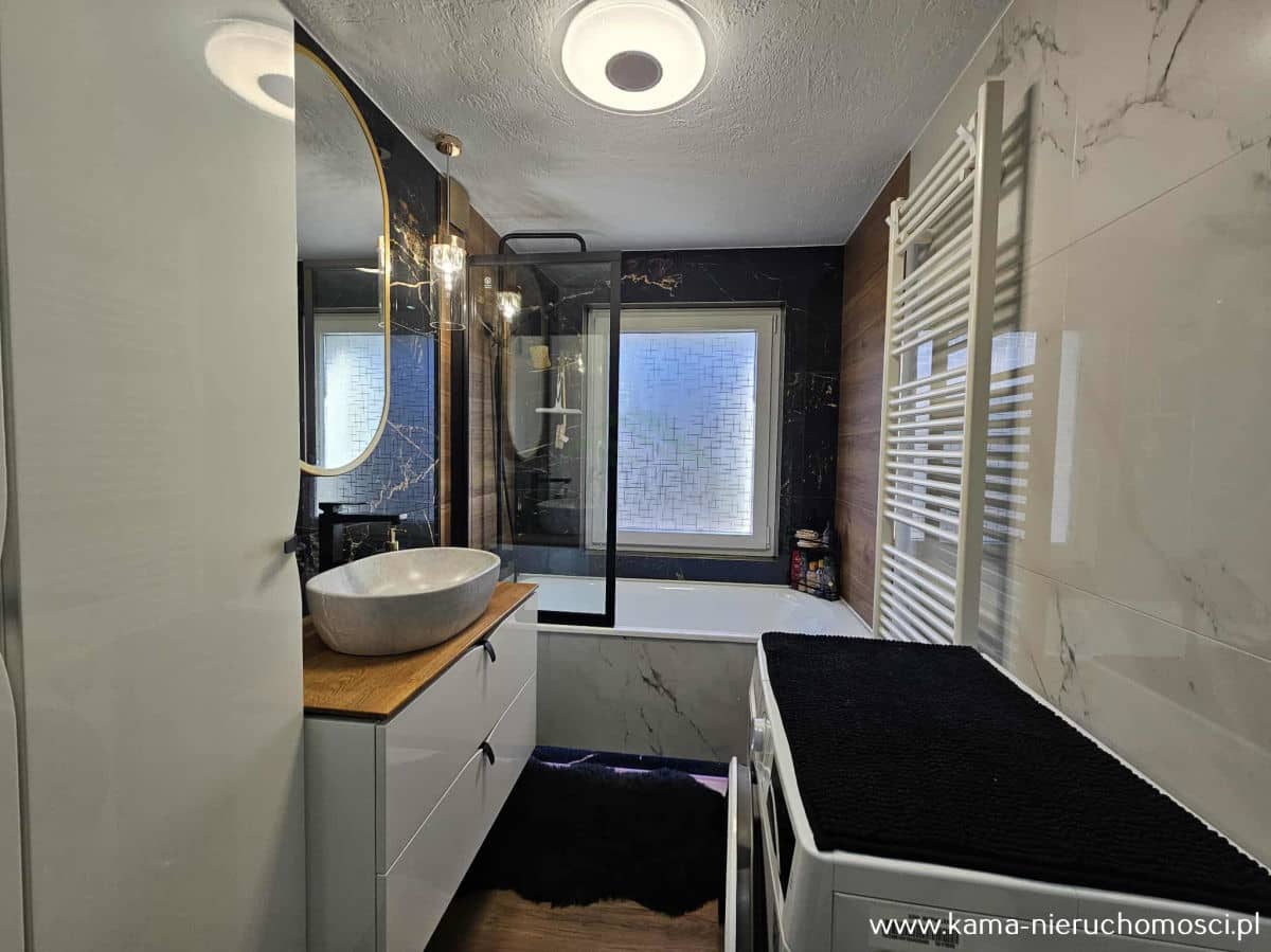 - łazienkę z wanną i WC, wykończoną estetycznie i praktycznie.