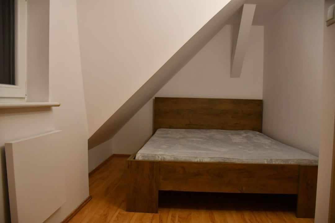 Okna PCV oraz dachowe drewniane nowego typu. Na podłogach kafle i panele.