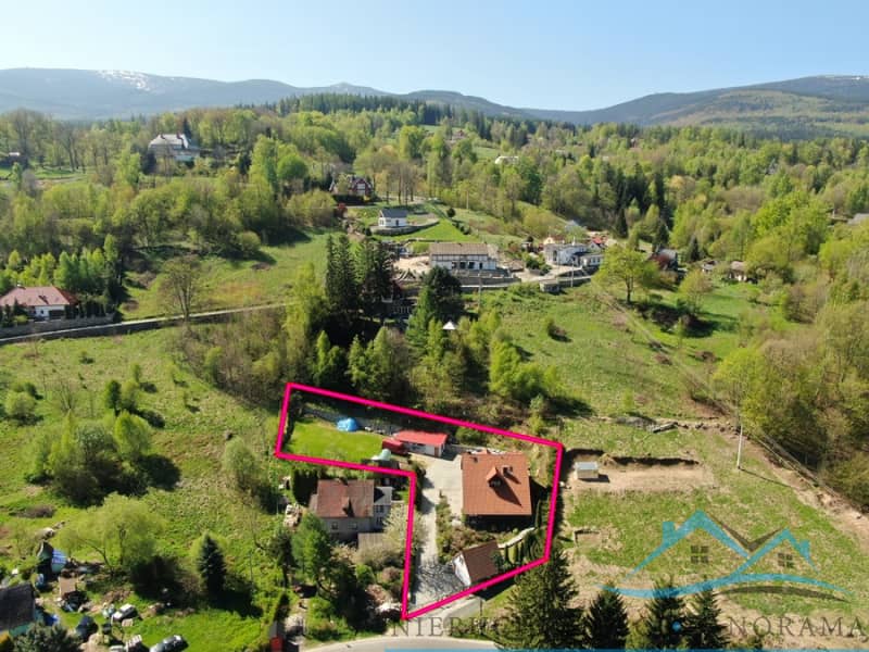 Dom z zabudowaniami gospodarczymi, pięknie położony, pośród łąk i lasów, na zielonym wzgórzu, w gminie Stara Kamienica. Posadowiony na działce 7300 m2 ( sprzedaż z działką 2500 m2, w poda