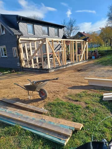 Zajmuję się realizacją dachów od podstaw, począwszy od konstrukcji więźby dachowej, aż po końcowe pokrycie i detale wykończeniowe.