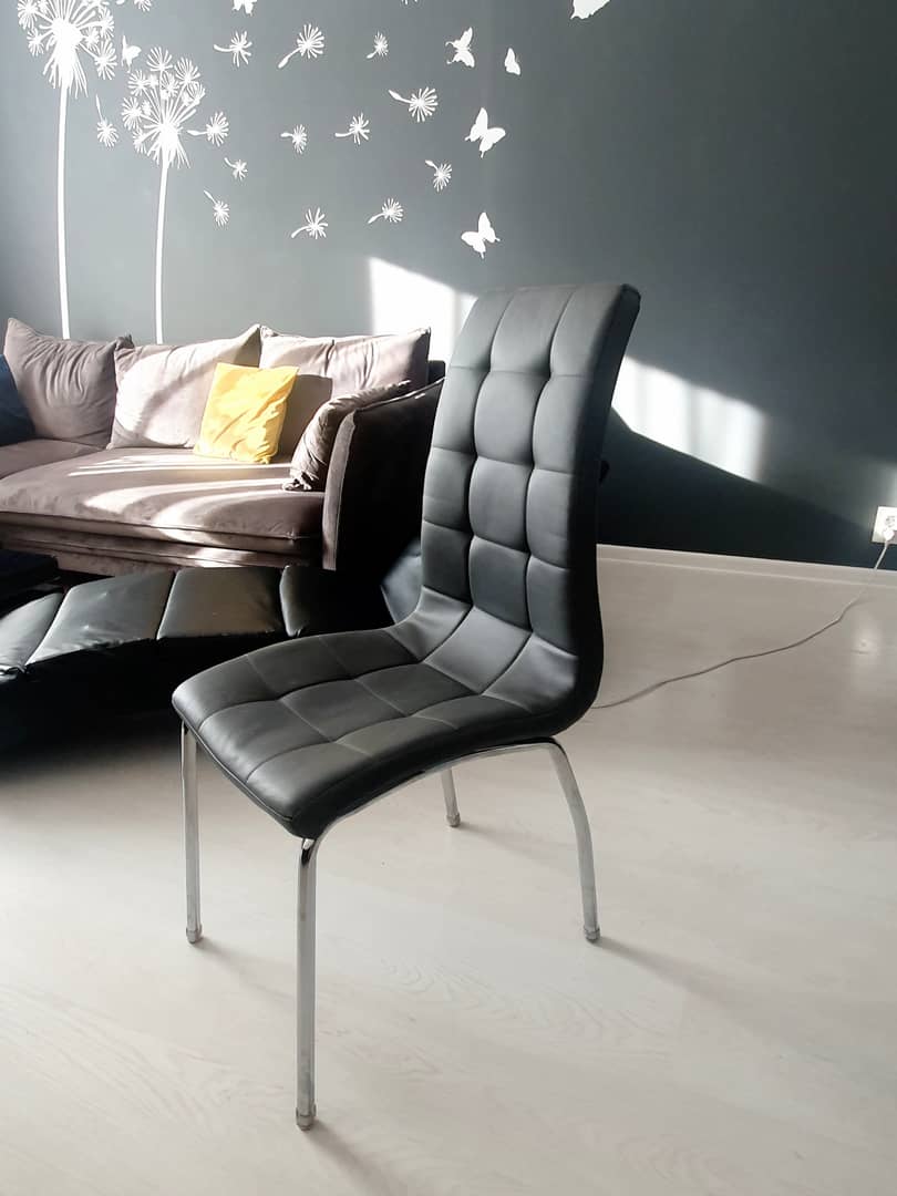 Dwa czarne,krzesła w nowoczesnym stylu. Solidna konstrukcja i wygodne siedziska. Niewielkie ślady użytkowania widoczne na zdjęciach. Cena za komplet 100 zł. Możliwy transport.