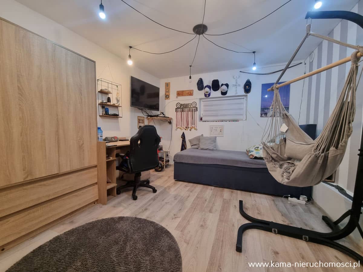 Do mieszkania przynależy ogródek, strych na poziomie mieszkania oraz duża piwnica.