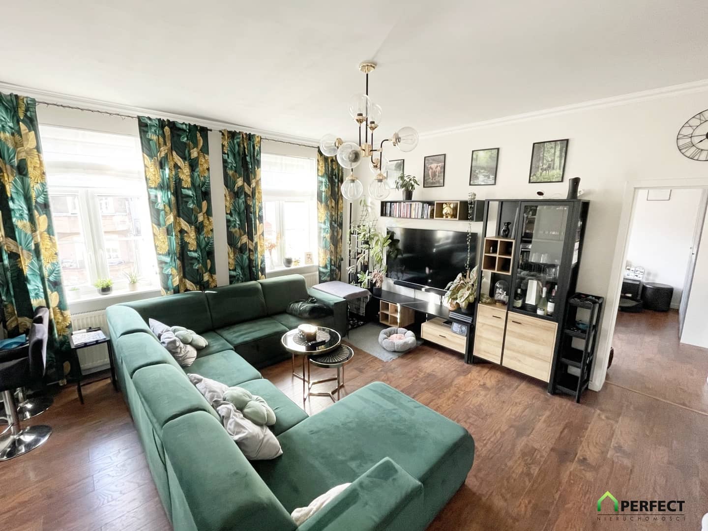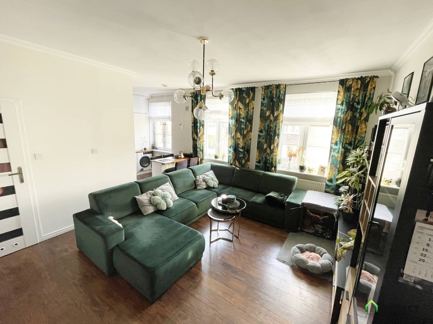 - przestronny salon z dużą wnęką kuchenną
