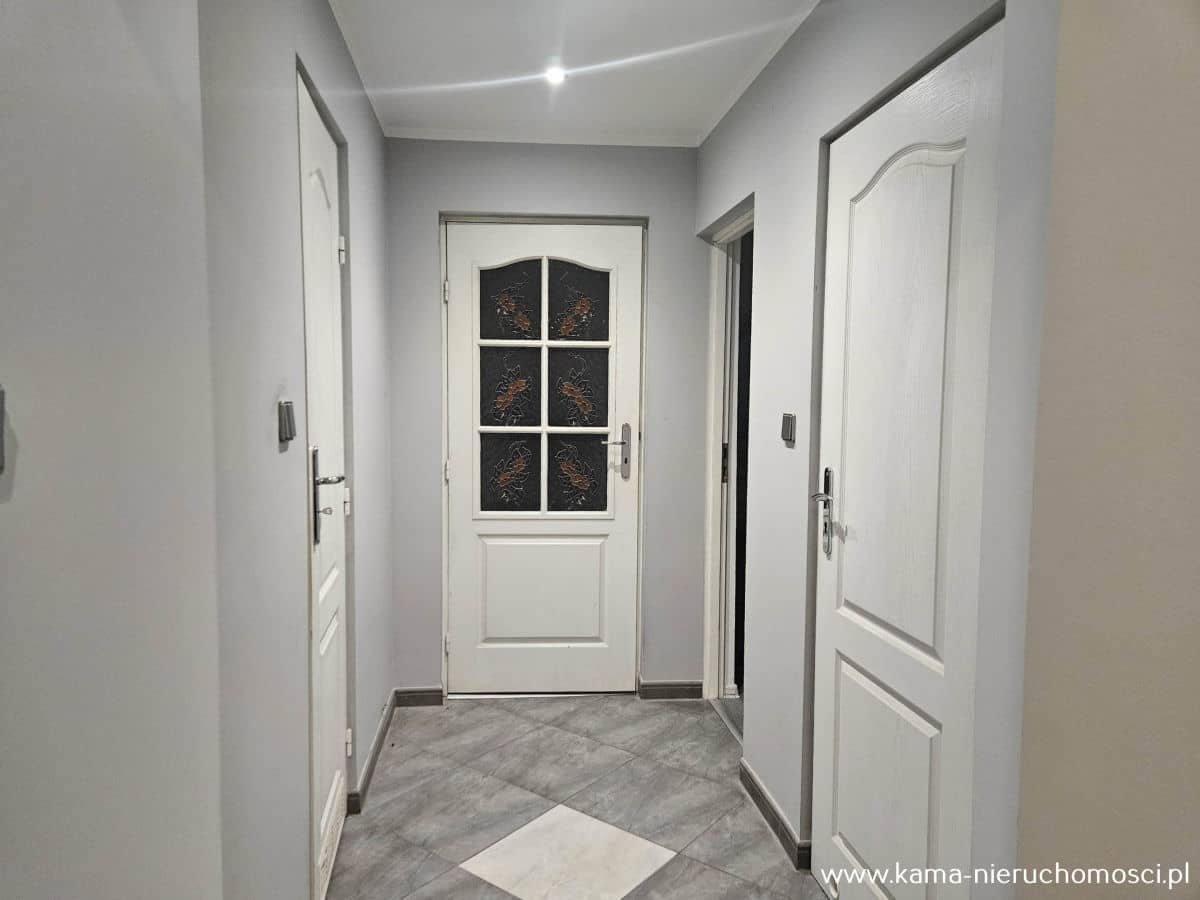 Mieszkanie przeszło remont, a jego wykończenie obejmuje stolarkę okienną PCV, podłogi wykończone panelami i kaflami, co gwarantuje trwałość i estetykę.