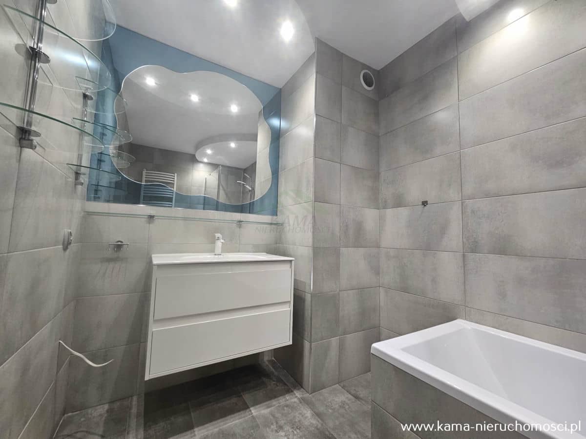 - łazienka z wanną, urządzona w nowoczesnym stylu