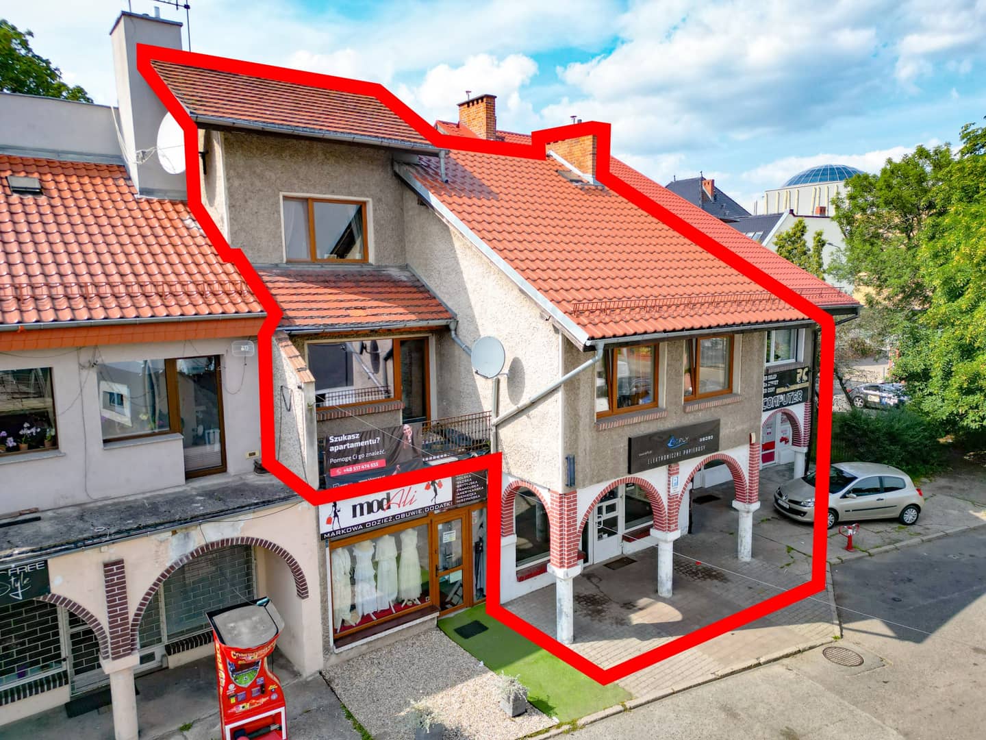 Na pierwszym poziomie znajduje się lokal użytkowy aktualnie wynajmowany. Część mieszkalna znajduje się na 2 i 3 poziomie. Wymiary i rozkład pomieszczeń w zdjęciach.