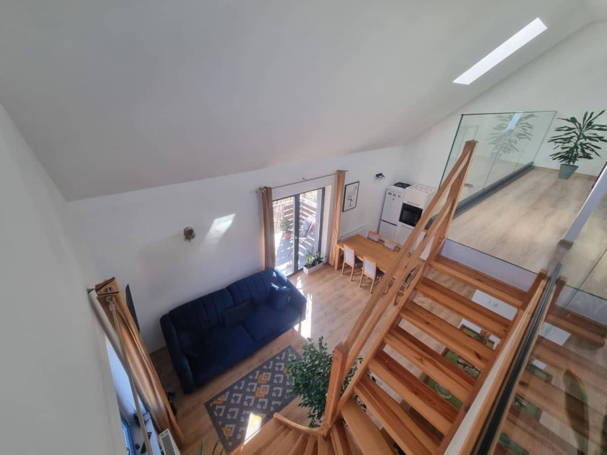 - salon z aneksem kuchennym i z wyjściem na zadaszony balkon