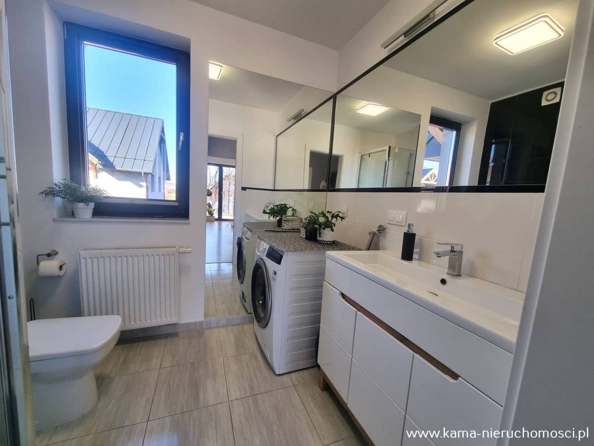 Na podłogach mamy wysokiej klasy panele oraz kafle.