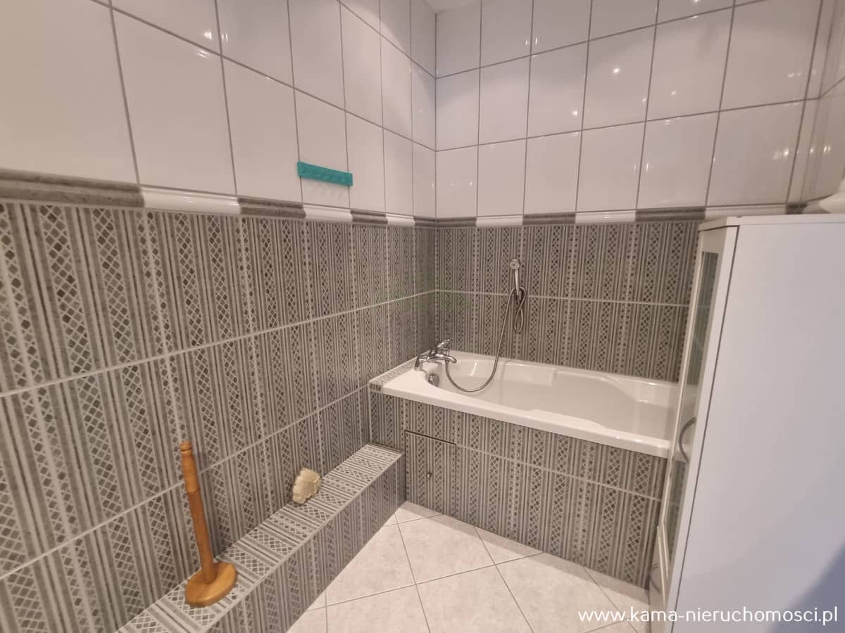 - łazienka wyposażona w wannę oraz WC