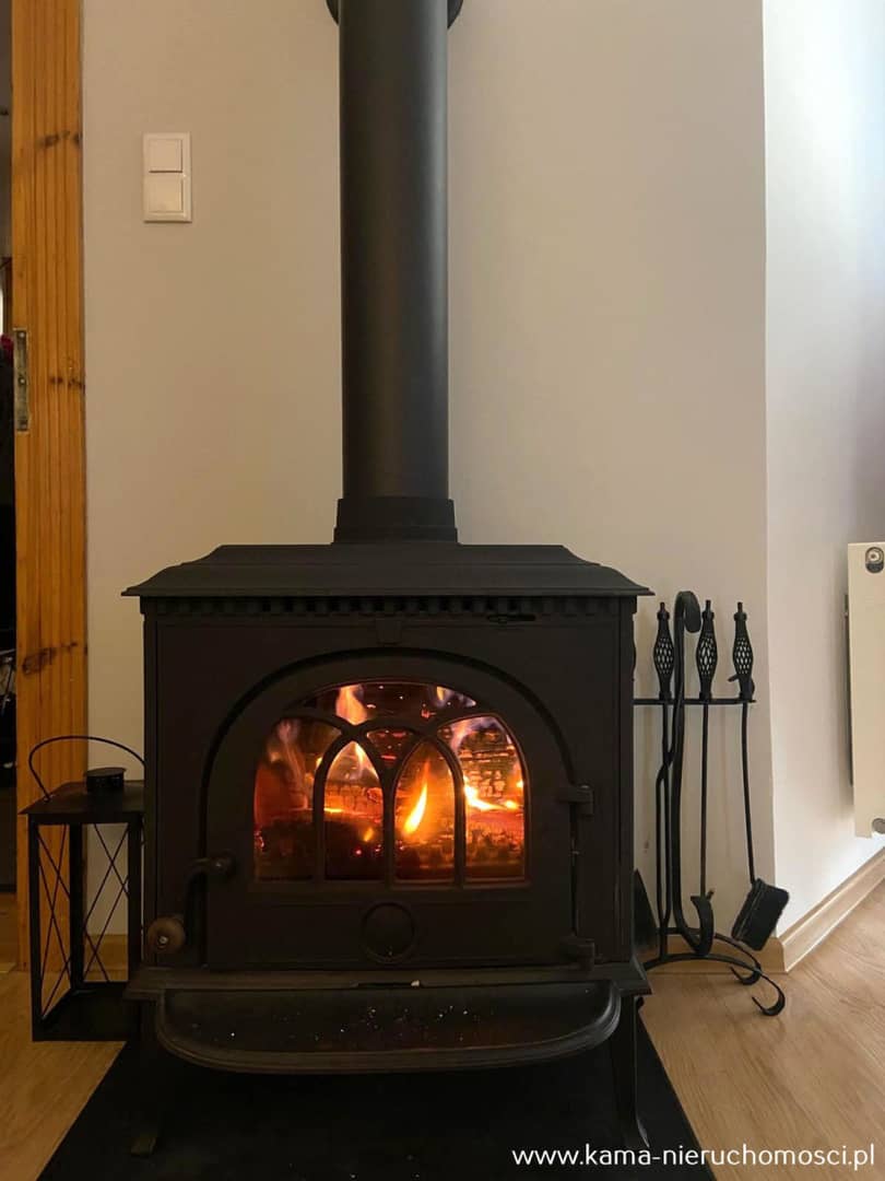 Dodatkowo w salonie znajduje się kominek.