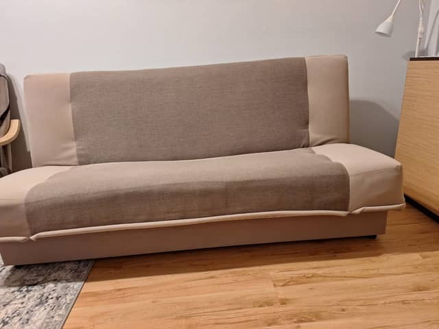 Na sprzedaż komfortowa leżanka tapicerowana, doskonaÅ‚a do wypoczynku w ciÄ…gu dnia lub jako dodatkowe miejsce do spania. Mebel posiada stabilnÄ