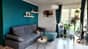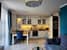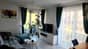 salon z aneksem kuchennym oraz bezpośrednim wyjściem na taras i ogród,