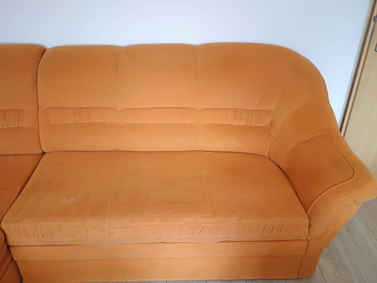 Sprzedam narożnik w stanie bardzo dobrym . Kolor pomarańczowy z funkcją spania 180 X 120 cm. Drobne ślady użytkowania. Wymiary 235 / 165 / wys. 93 cm. Do soboty cena symboliczna 10 zł. Odbiór Mysłakowice.
