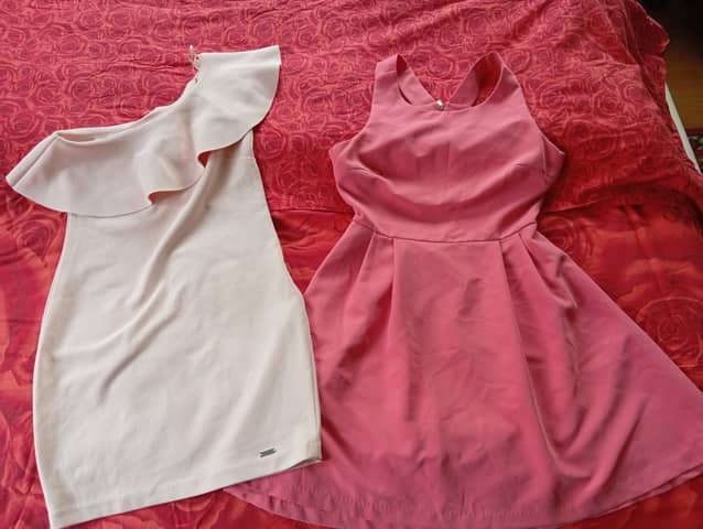 Witam mam na sprzedaż dwie różowe sukienki oraz sukienko spodenki czarne rozmiar między 34 a 36 cena 150 zł