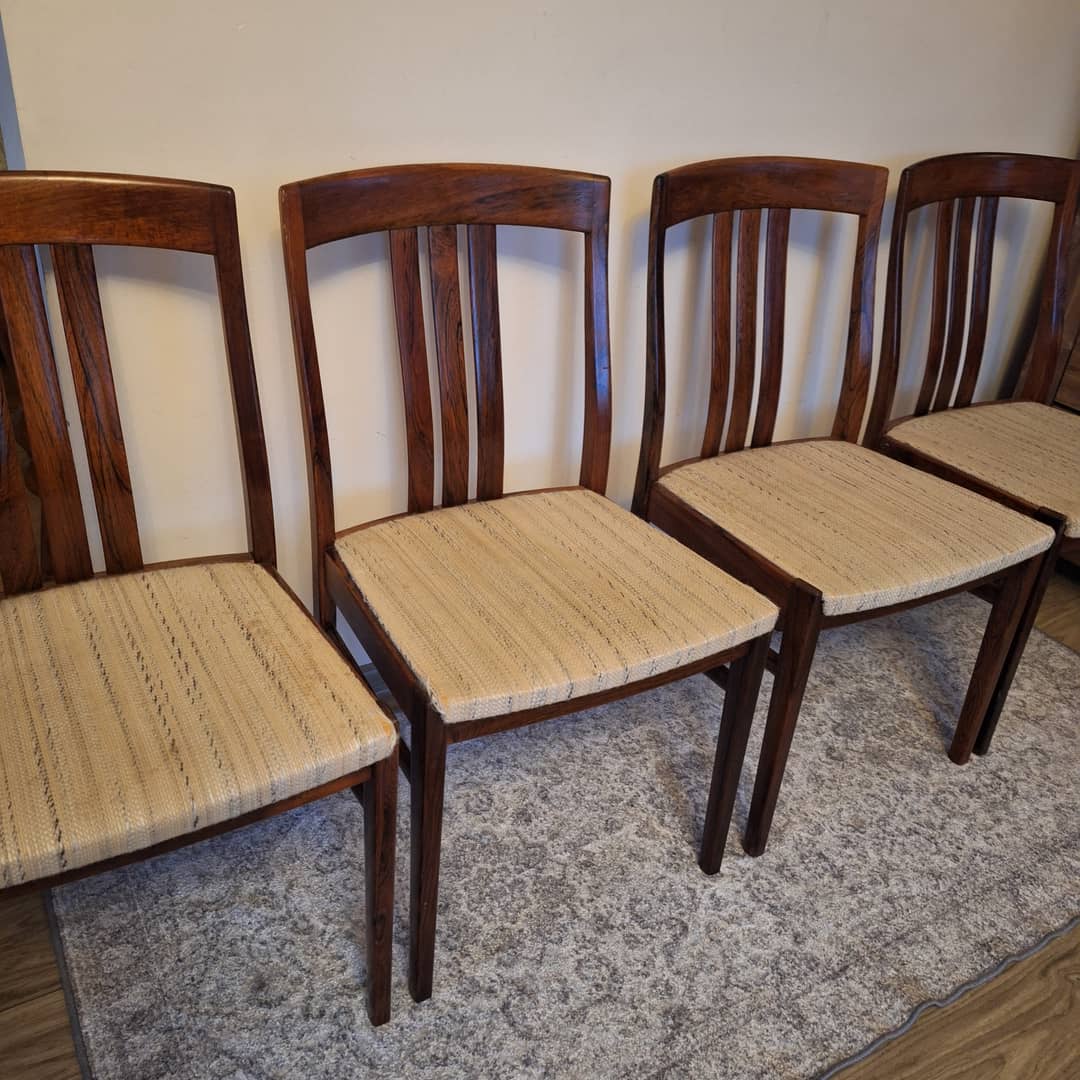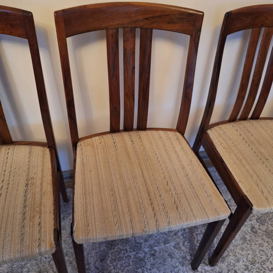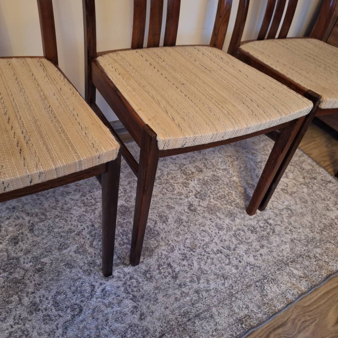 Cztery krzesła z drewna teakowego, duńskie, lata 70, styl Vintage. Minimalistyczny wzór, bardzo wygodne, oryginalny materiał. Cena 280 za komplet. Możliwy transport.