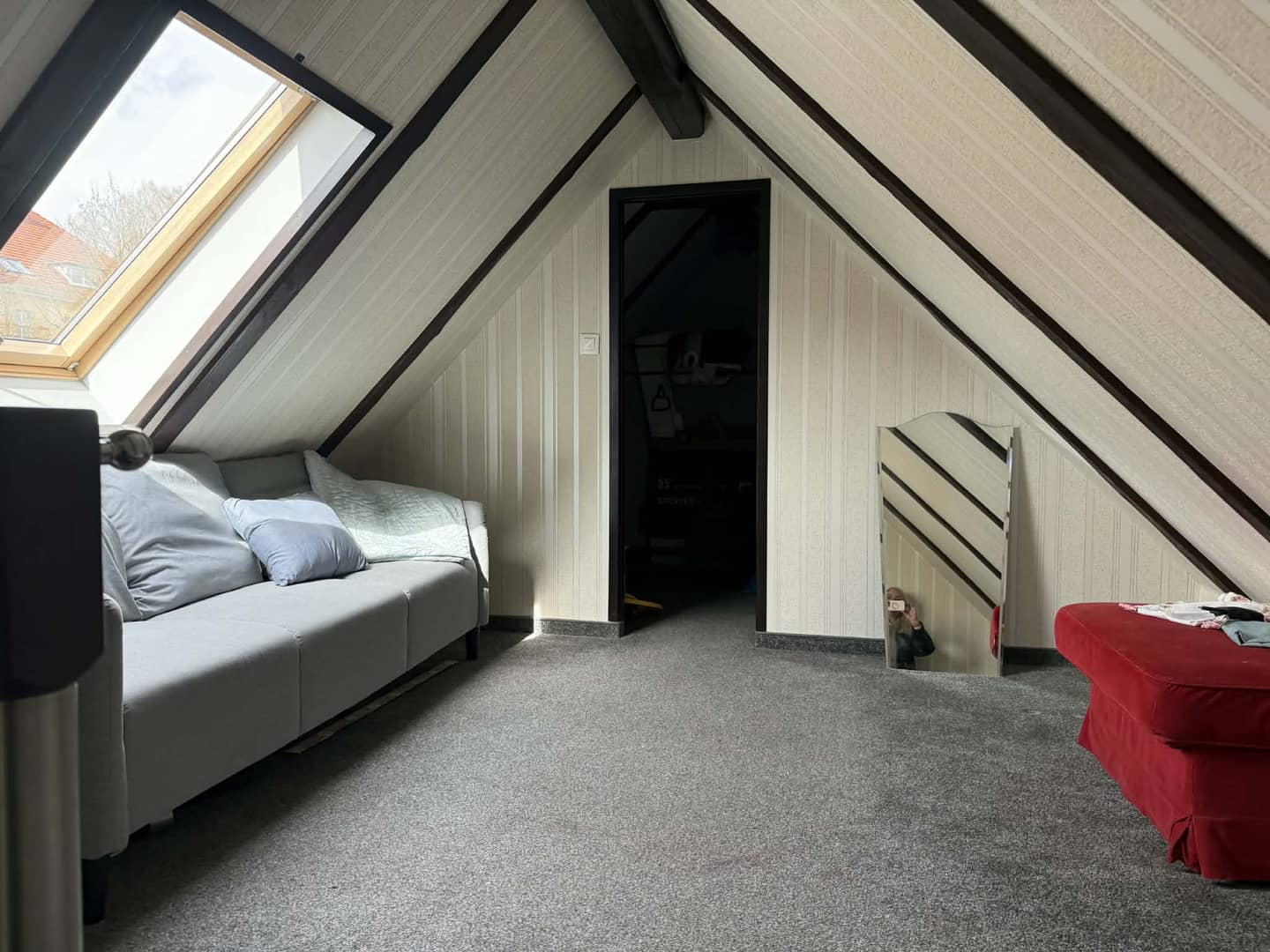 Pokój na poddaszu i garderoba nie umeblowana.