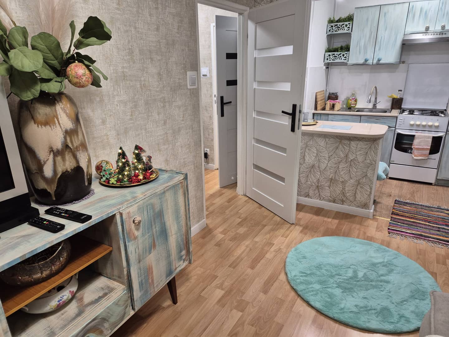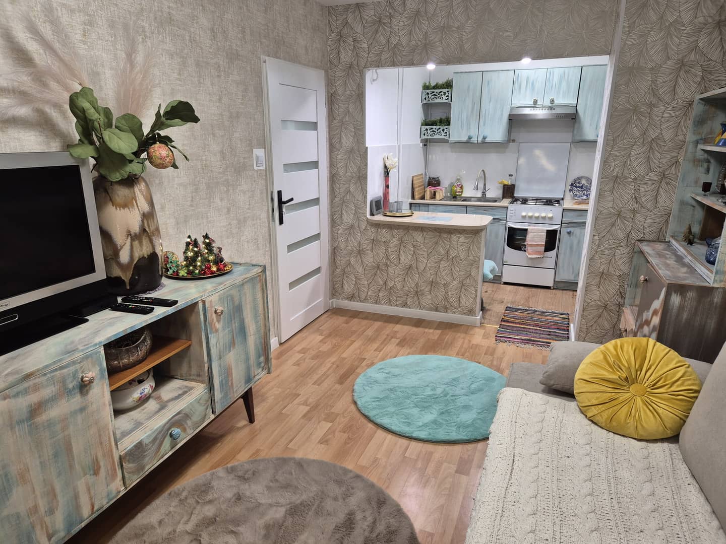 Piękne mieszkanie wyposażone.wszystko nowe,ogrzewanie gazowe plus koza.kameralna nieruchomość z terenem zielonym,miejscem do parkowania i dostępem do piwnicy.7 min pieszo od kościoła,deptaka, t