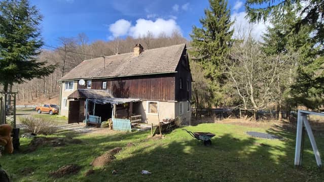 Dom z zabudowaniami gospodarczymi, pięknie położony, pośród łąk i lasów, na zielonym wzgórzu, w gminie Stara Kamienica. Posadowiony na działce 7300 m2 ( sprzedaż z działką 2500 m2, w poda