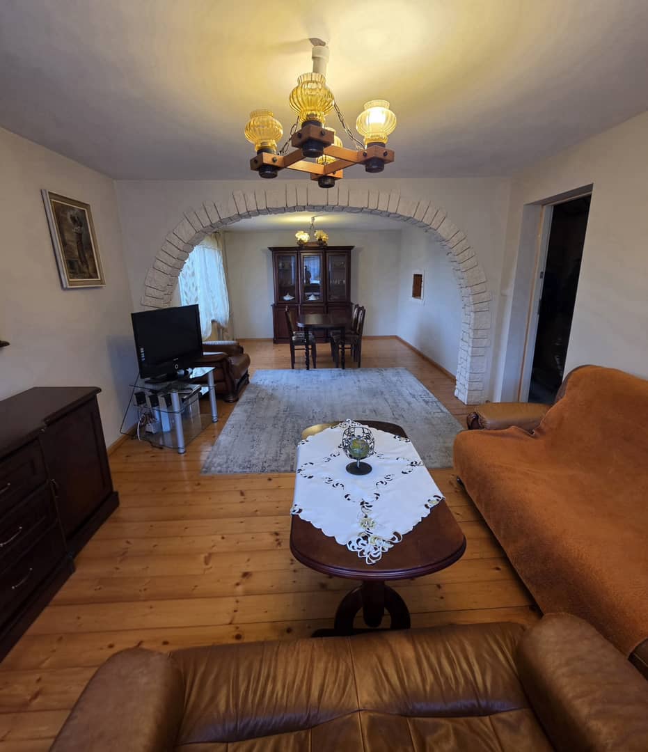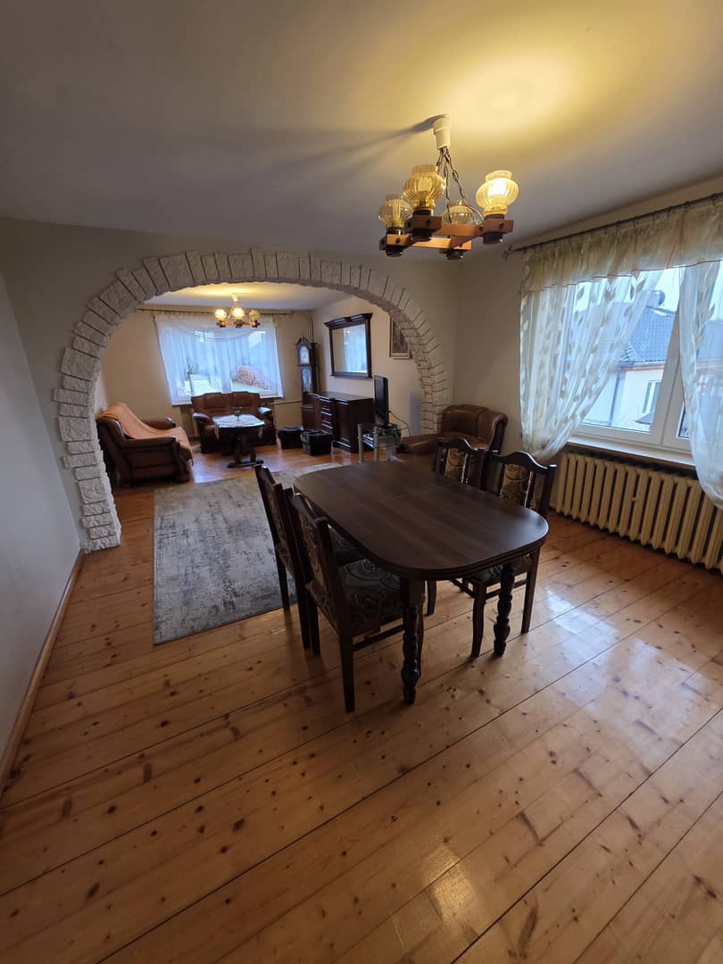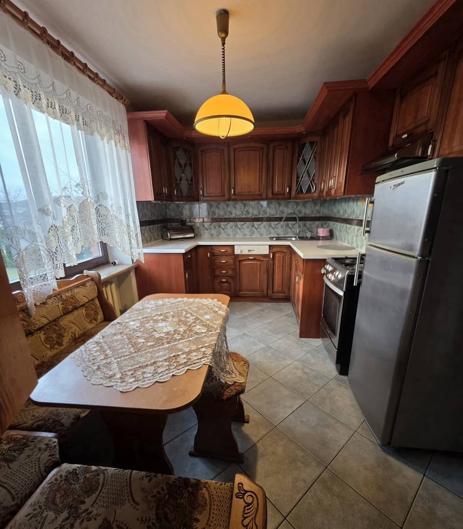 4 pokoje w tym jeden z balkonem, salon z jadalnią, wyposażona i umeblowana kuchnia oraz 2 łazienki, dodatkowo garaż i strych. Pokoje czesciowo umeblowane jak na zdjęciach. Ogrzewanie gazowe. Przy domu ogród z warzywnikiem, częścią rekreacyjną i sadem. Czynsz miesięczny wynosi 4500 zł plus media, plus kaucja 5000 zł. Dom odświeżony do zamieszkania od zaraz. Cena do negocjacji. Serdecznie zapraszam na prezentację. Nieruchomości Rychlewski