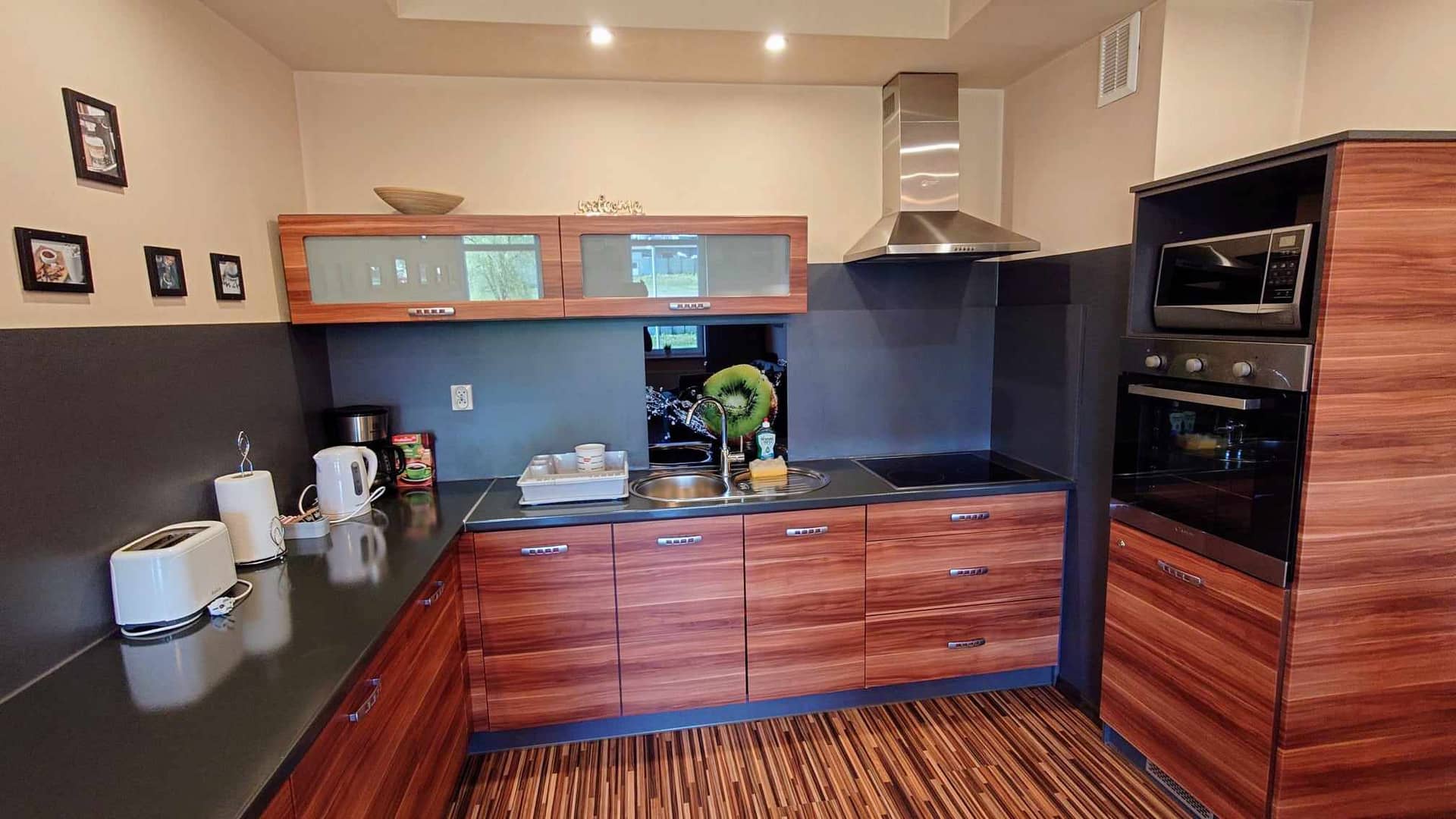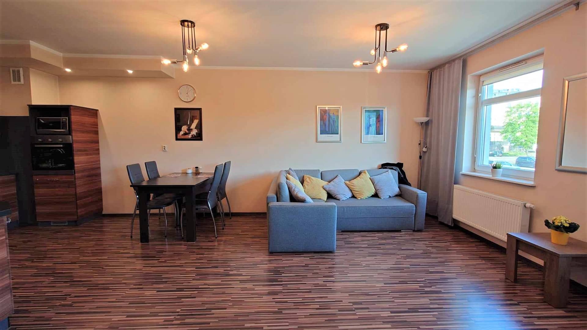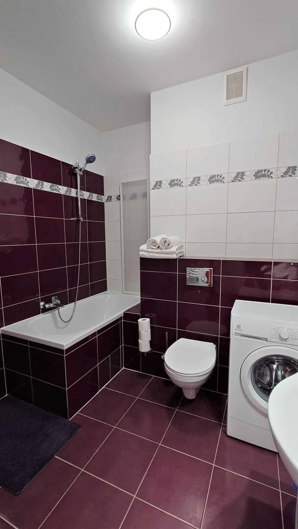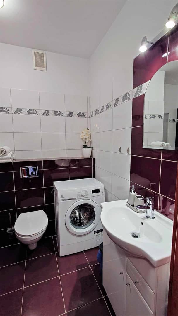Mieszkanie w pełni umeblowane i wyposażone w sprzęt AGD i RTV. Pralka, lodówka, piekarnik, kuchenka mikrofalowa, płyta grzewcza, czajnik, toster, TV 42".