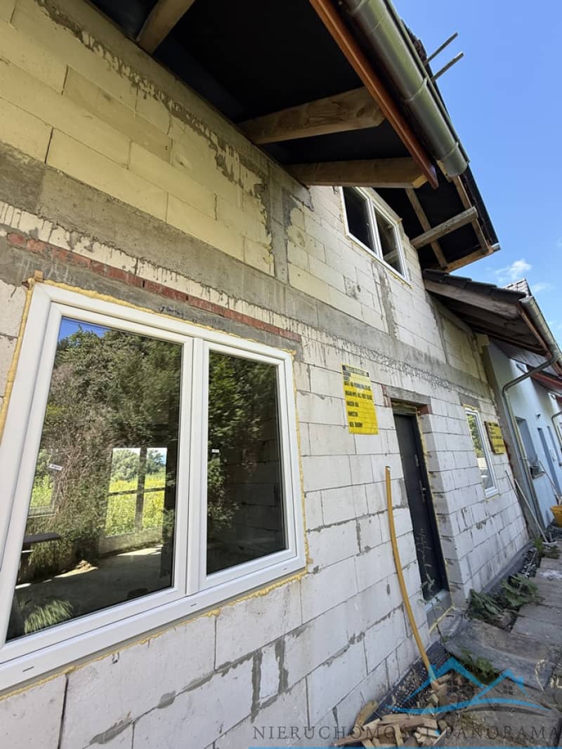 Nowy Dom w zabudowie bliźniaczej w Jeżowie Sudeckim. Posadowiony na działce 347 m2, budowany z Ytonga , ocieplony, wykończony tynkiem gtafit, dach pokryty dachówką ceramiczną. Projekt " Do
