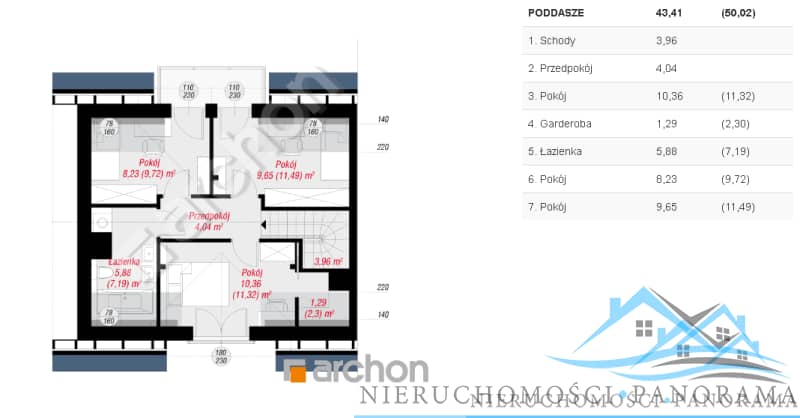 1 piętro: 3 sypialnie z czego dwie z wyjściem na balkon oraz łazienki ( na chwilę obecną na piętrze jest otwarta przestrzeń – nowy nabywca może rozmieścić pomieszczenia według swoich potrzeb).