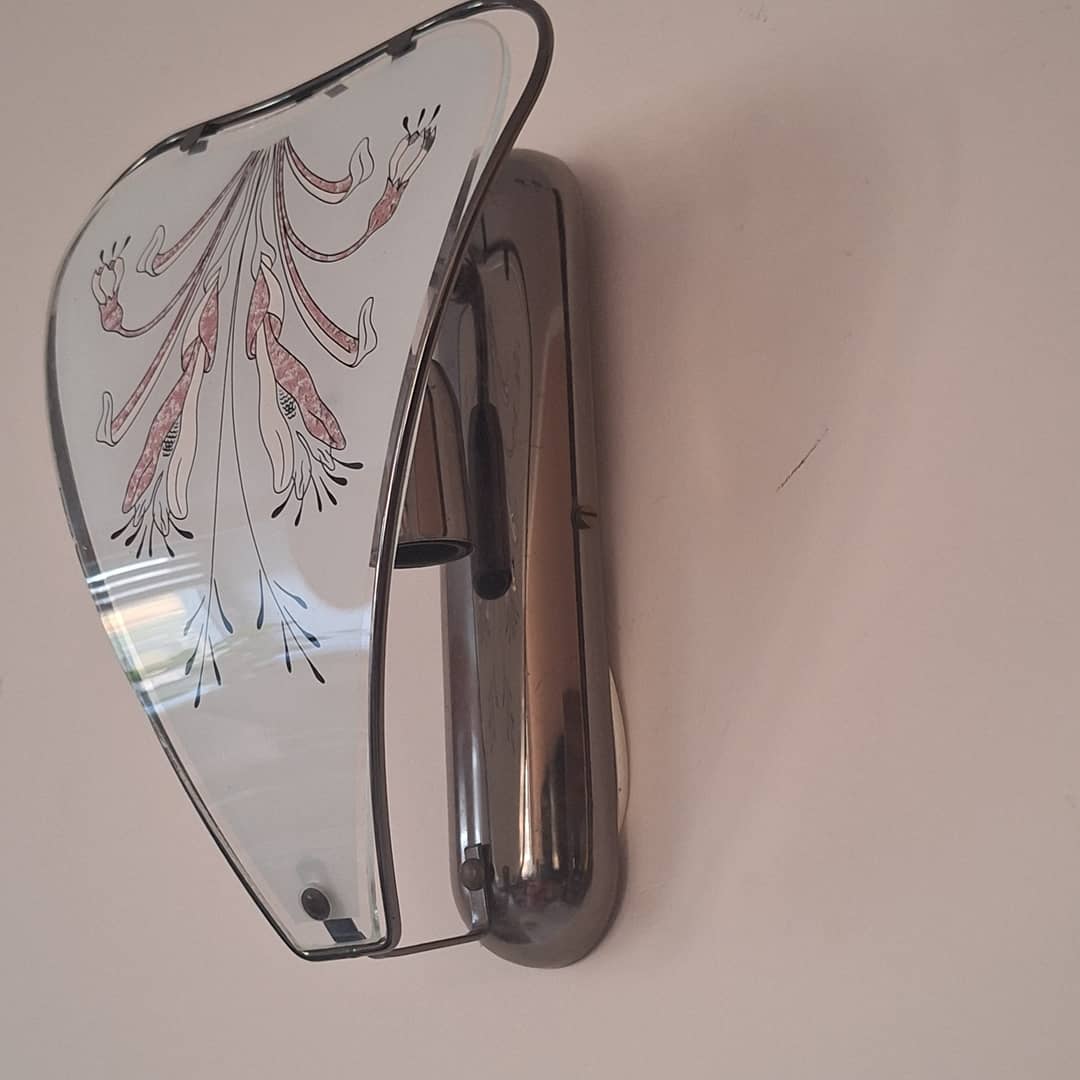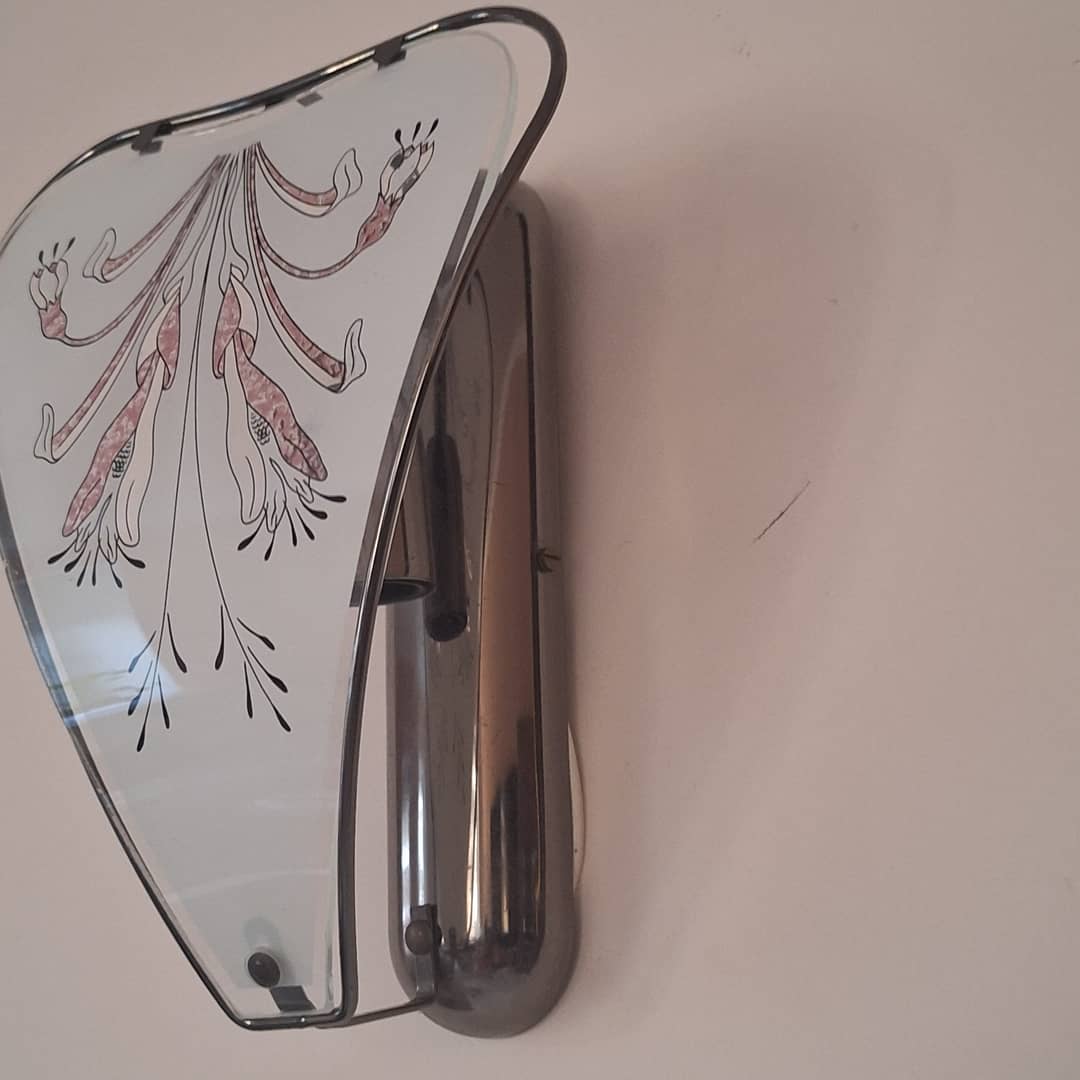 Kinkiet ścienny z lat 60, 70 tych, długość 25 cm. Możliwy dowóz lub wysyłka. Możliwy dowóz lub wysyłka. Cena 30 zł.