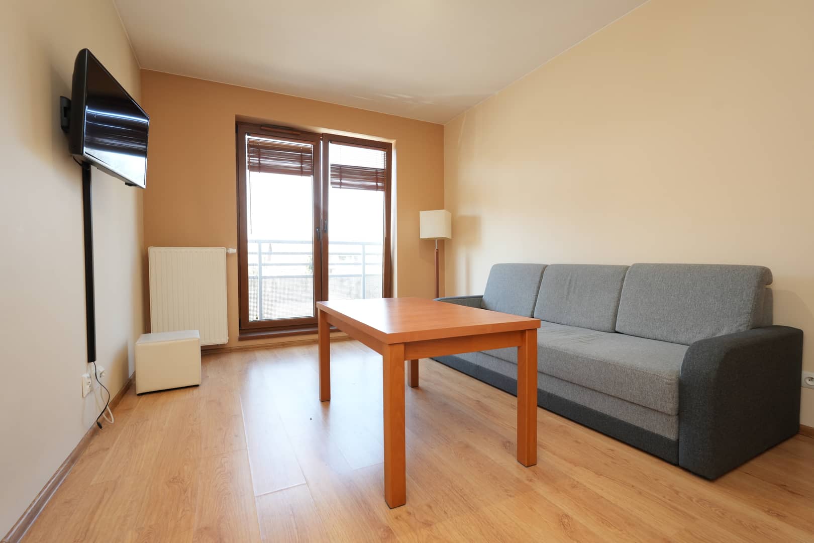 Słoneczny salon z balkonem francuskim