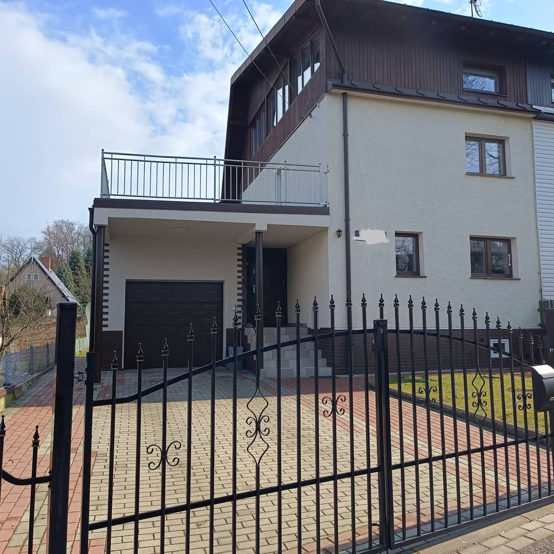Komfortowo wykończony dom w zabudowie bliźniaczej, w Kowarach. Posadowiony na działce 523 m2 o powierzchni całkowitej około 190 m2 i użytkowej 153 m2. W przyziemiu budynku znajduje się pralnia, kotłownia, warsztat plus 2 pom. gospodarcze. Parter obejmuje przedpokój, łazienkę, wyposażoną i umeblowaną kuchnie, połączona z jadalnią i poniżej salonem z wyjściem na drewniany taras, połączony z ogrodem. Na piętro prowadzą nowe, podświetlane schody gdzie znajduje się korytarz, 2 pokoje, łazienka, garderoba oraz taras około 50 m2 z pięknymi widokami na panoramę miasta i pobliskie wzgórza. Powyżej otwarty, przestronny i słoneczny salon oraz sypialnia z mniejszą garderobą i wyjściem na balkon. Budowany pod koniec lat 70 z superexu, ocieplony suprema, dach pokryty blachą. W 2019 roku dom przeszedł kapitalny remont, wymieniono wszystkie instalacje, położone nowe tynki i gładzie, podłogi na całości pokryte panelami, wymienione okna na pcv 3 szybowe, nowe drzwi wewnętrzne i zewnętrzne. Ogrzewanie piecem gazowym, bardzo ekonomicznym firmy Vaillant z zasobnikiem na wodę. Dodatkowo zamontowane panele fotowoltaiczne. W bryle budynku garaż z bramą na pilota, przed domem położona kostka, teren ogrodzony metalowym płotem. Atrakcyjna lokalizacja z uwagi na bliskość centrum miasta a zarazem w otoczeniu natury i zieleni. Dom bardzo wygodny i komfortowy, urządzony gustownie, do zamieszkania bez dodatkowego wkładu finansowego. Cena 880 000 zł podlega negocjacji. Oferta dostępna tylko w Naszym biurze, serdecznie polecam i zapraszam na prezentację Nieruchomości Rychlewski