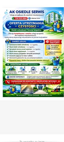 Przyjmę zlecenia na kompleksowe sprzątanie klatek schodowych oraz terenów zielonych.