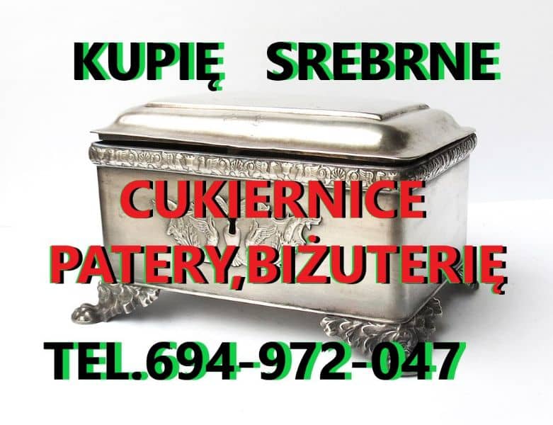 zegarki, srebrną biżuterię, srebrne cukiernice, sztućce, monety srebrne i