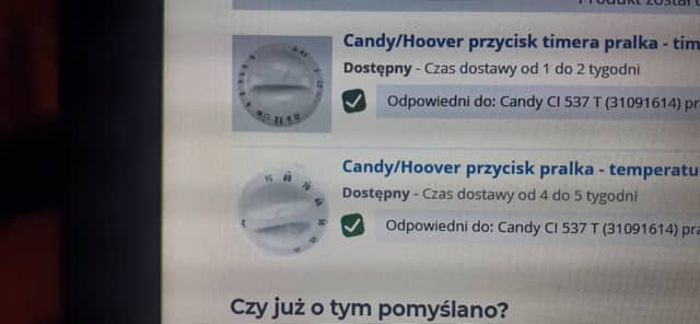 Kupię pokrętła do pralki CANDY CI537T.