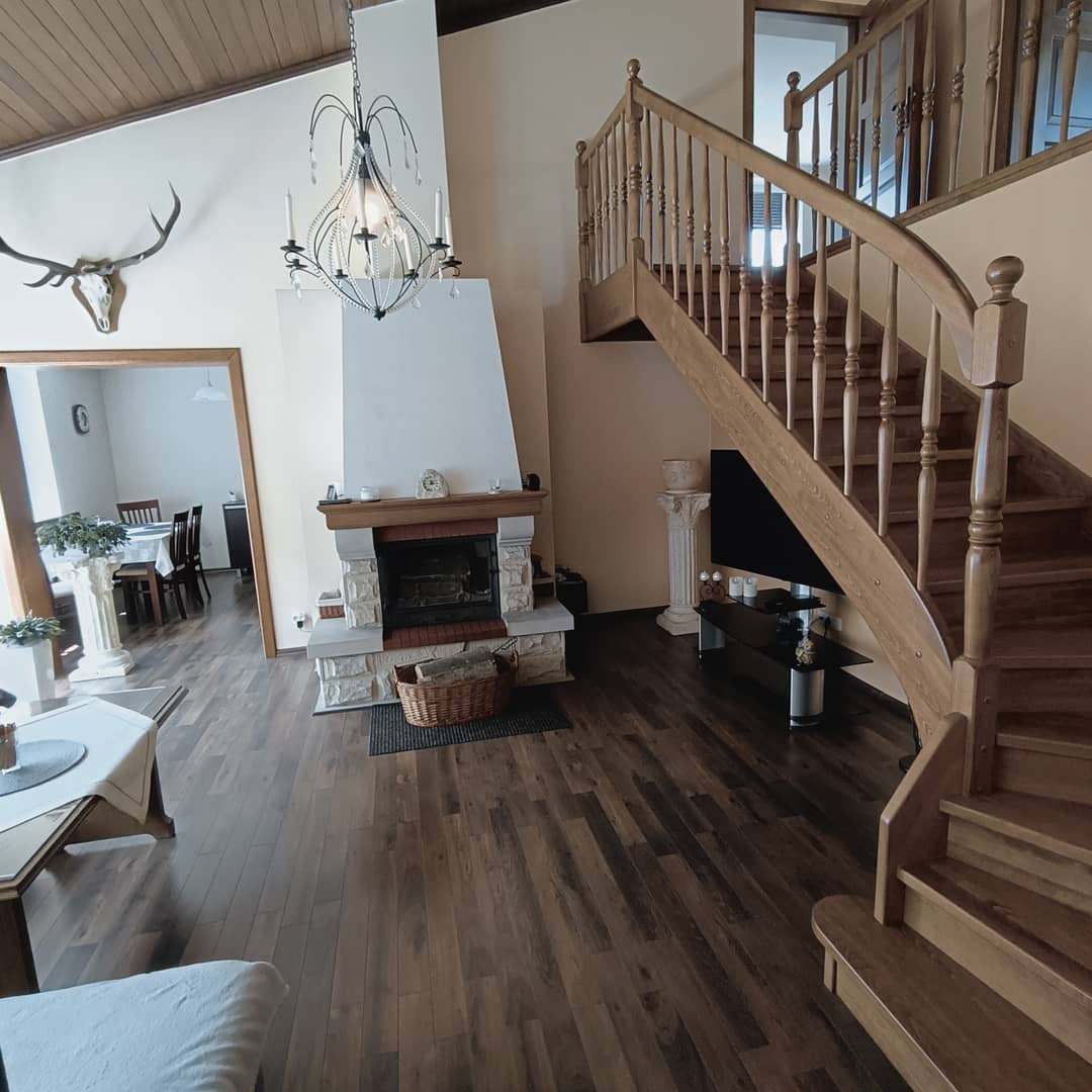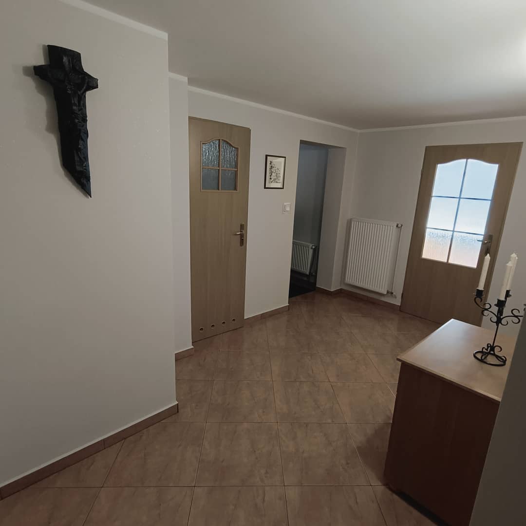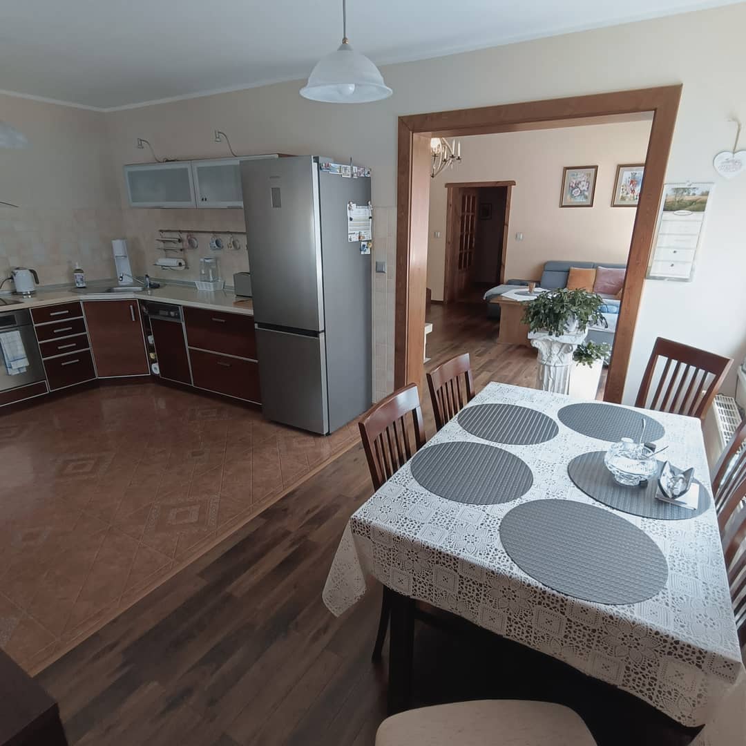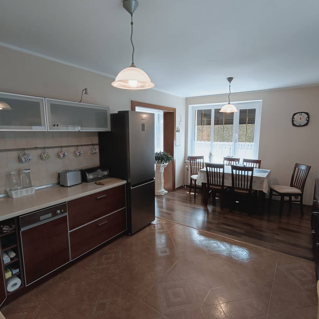 Komfortowy dom wolnostojący położony w ładnej części Cieplic, dzielnicy Jeleniej Góry. Budowany w latach 80 po kapitalnym remoncie w 2017 roku. Ocieplony styropianem 10cm lambda 0,31 wykończony tynkiem żywicznym. Dach pokryty blachą dachówką. Posadowiony na działce o powierzchni 550 m2. Powierzchnia całkowita domu wynosi 200 m2 w tym użytkowa 187m2 i obejmuje w parterze wiatrołap, hall, 2 pokoje, 2 garderoby, ( w tym jedna z oknem, może pełnić funkcję dodatkowego pokoju )oraz łazienka z natryskiem. Ponadto przejście do otwartego salonu, połączonego pięknymi, drewnianymi schodami z piętrem domu, co daje doskonałą przestrzeń i urok. W salonie znajduje się również kominek, wyjście na nowy taras i przejście do jadalni połączonej z wyposażoną i umeblowaną kuchnią. Przy kuchni znajduje się spiżarnia z kuchnią letnią i wyjściem bezpośrednio na ogród. Na piętrze znajdują się 3 sypialnie w tym jedna z balkonem, również po remoncie, oraz poddaszowym schowkiem, druga z dużą zabudowaną szafą, łazienka z wanną oraz loggia. Po kapitalnym remoncie w 2017 roku zostały wymienione wszystkie instalacje elektryczna, wodno - kanalizacyjna, grzewcza, nowe podłogi, położone nowe legary, ocieplenie, płyty OSB i na to panele, w pozostałej części płytki . Wymienione drzwi, okna pcv z elektrycznymi roletami antywłamaniowymi na parterze i regulowanymi ręcznie na piętrze. Ogrzewanie piecem gazowym, dwufunkcyjnym, 1 rocznym. Media to prąd, woda, gaz ,kanalizacja. Dom gustownie urządzony, wykończony ładnie elementami drewnianymi co dodaje ogromnego uroku i przestrzeni. Teren ogrodzony z brana na pilota, wyłożony kostką podjazd, w pozostałej części pięknie zagospodarowany trawnik oraz murowany grill na ogrodzie. Przed budynkiem drewniana wiata na 2 samochody, pomieszczenie na narzędzia ogrodowe, część na drewno oraz pomieszczenie na rowery i mały warsztacik. Doskonała lokalizacja w pobliżu sklepów, marketów, przychodni, przystanku MZK, szkoły. Dom w doskonałej formie, do zamieszkania bez jakichkolwiek dodatkowych nakładów finansowych. Atrakcyjny z uwagi na stan wykończenia, lokalizację oraz komfort jaki posiada. Cena 1250 000 zł podlega negocjacji, serdecznie polem i zapraszam na prezentację Nieruchomości Rychlewski