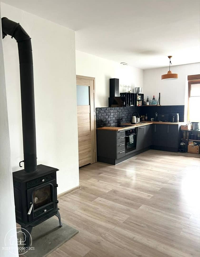 Połowa domu mieszkalnego- podział w pionie pow. 112 m2 , 3-pokoje, kuchnia – z kuchenką typu Westfalka, łazienka , korytarz, strych – możliwość zamieszkania i dalszej modernizacji, czy remo