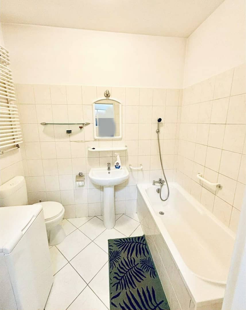 - łazienka z wanną i toaletą
