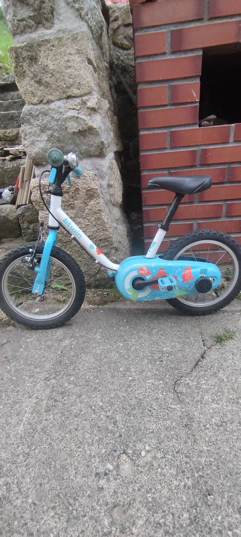 Mamy do sprzedania rower dla dziecka 4-5 lat BTWIN DARK HERO 500 używany przez jedno dziecko, idealny do pierwszych zmagan tuż po rowerku biegowym. Åšlady użytkowania widoczne na zdjÄ™ciach. KóÅ